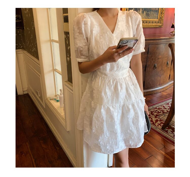 ワンピース 半袖 春夏 きれいめ aライン ティアード ミニ丈 膝上 七分袖 パフスリーブ カシュクール フレア レース 刺繍 ウエストマーク ふわふわ ハイウエスト S M L かわいい 大人可愛い シンプル 大人 上品 おしゃれ 女性らしい フラワー コーデ スタイル モテ 普段使い トレンド インスタ映え ラブリー キュート ガーリー エレガント モダン 主役級 存在感 OL 通勤 学生 通学 ママコーデ デート お出かけ 女子会 お泊まり 休日 パーティー イベント リゾート 旅行 ホテル