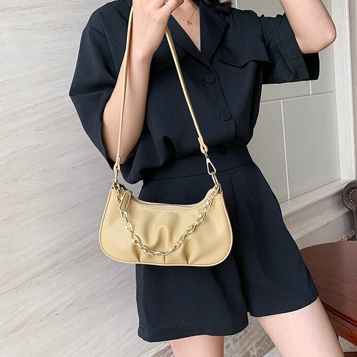 ショルダーバッグ レディース ハンドバッグ ワンショルダー ゴールドチェーン 小さめ 小型 カラーバリエーション 春 夏 上品 エレガント デート お出かけ 女子会 ホワイト オレンジ パープル イエロー ブラック 10代 20代 30代