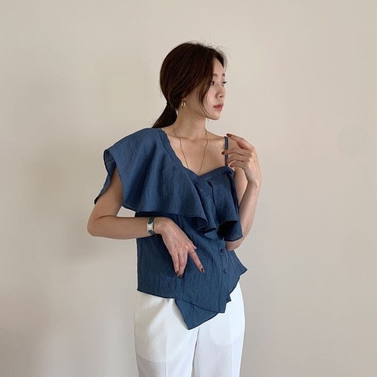 3色 トップス プルオーバー レディース 春夏 かわいい ショート丈 ノースリーブ Uネック 襟なし 切り替えデザイン フリル バックコンシャス 色展開 ホワイト ブラック ブルー ワンサイズ フリーサイズ かわいい 大人可愛い カジュアル おしゃれ 無地 コーデ スタイル モテ 10代 20代 30代 こなれ感 ラブリー キュート ガーリー 個性的 セクシー 主役級 存在感 抜け感 OL 学生 デート お出かけ 女子会 パーティー イベント リゾート 旅行 ショッピング 映画館 誕生日 同窓会