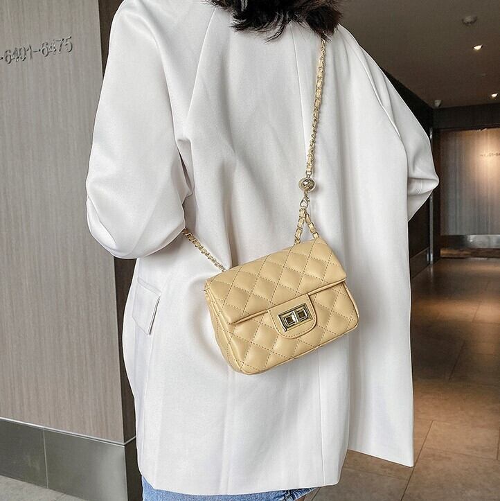 オシャレなチェーンショルダーのスクエアバッグ。