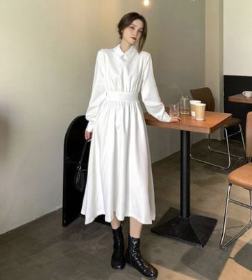 2色 ワンピース 長袖 春 秋 きれいめ カジュアル ロング シャツワンピース ロング丈 襟付き ポロカラー 細身 スマート ウエストマーク ハイウエスト ホワイト ブラック S M L XL かわいい 大人可愛い きれいめ シンプル カジュアル 大人 上品 おしゃれ ナチュラル 無地 スタイル 脚長 普段使い エレガント 主役級 存在感 OL 通勤 学生 通学 デート お出かけ 女子会 お泊まり 休日 旅行 レストラン ショッピング 映画館 ママ 高校生 OL 学生 10代 20代
