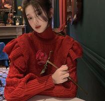 セーター レディース トップス レトロ フリル無地 ハイネック シック 細身 長袖 袖あり 春 秋 スプリング オータム カジュアル エレガント 上品 大人可愛い キレイ きれいめ 可愛い オシャレ お洒落 10代 20代 学生 通学 デート 女子会 合コン 通勤 通学 学生 OL 社会人 お出かけ お泊まり ゆったり 買い物 ショッピング 休日 旅行 サイズ豊富 4サイズ S M L XL 赤 レッド