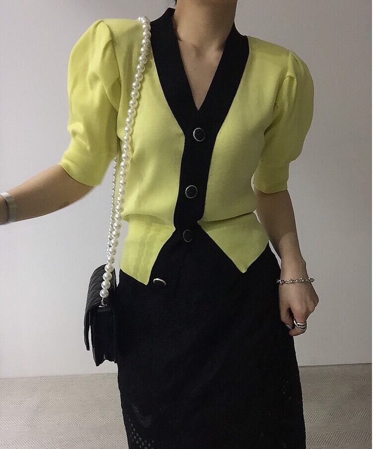 4色 レトロ風 アウター カーディガン レディース 春 かわいい 軽い ショート丈 半袖 五分袖 ボリューム袖 パフスリーブ Vネック 襟なし 前開き 白 ホワイト 黒 ブラック 黄色 イエロー ピンク パステルカラー 大人カラー 春カラー フリーサイズ ゆったり ゆる ワンサイズ かわいい 大人可愛い きれいめ シンプル カジュアル 大人 上品 おしゃれ レトロ 無地 韓国 韓国系 オルチャン ファッション コーデ スタイル 楽ちん 着回し モテ 普段使い インスタ映え こなれ感 ラフ ラブリー