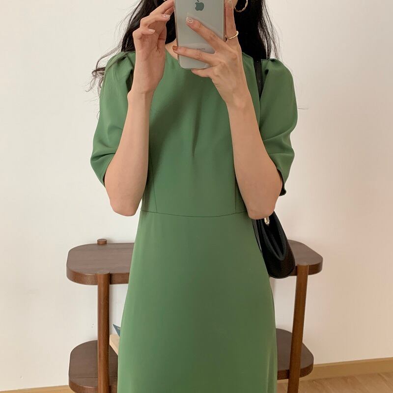 ワンピース レディース ミディ丈 ミディアム丈 半袖 お出かけ シンプル デートエレガント サマードレス 夏 浜辺 海 リゾート セレブ 薄い S M L オレンジ ネイビー 白 ホワイト ピンク 緑 グリーン 10代 20代 甘い 森ガール 甘辛コーデ 2021 5色 ゆるい 清楚 上品 優美 優雅 無地 オフィスカジュアル フェミニン 大人女子 大人可愛い Aラインスカート ふんわり きれいめ おしゃれ こなれ感 キュート 通勤 オフィス 仕事 ナチュラル スタイリッシュ