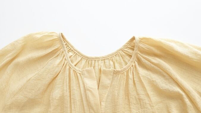 3色 トップス シャツ ブラウス チュニック 夏 春 秋 かわいい きれいめ カジュアル ショート ショート丈 長袖 ボリューム袖 キャンディスリーブ ぽわん袖 Uネック ラウンドネック フレア セミフレア 裾イン 前開き シンプル イエロー パステルカラー ラベンダー ライトブルー S M L かわいい 大人可愛い きれいめ シンプル カジュアル 大人 上品 おしゃれ ナチュラル かっこいい レトロ 無地 韓国 韓国系 オルチャン 韓国ファッション 体型カバー 定番 普段使い インスタ映え こなれ感