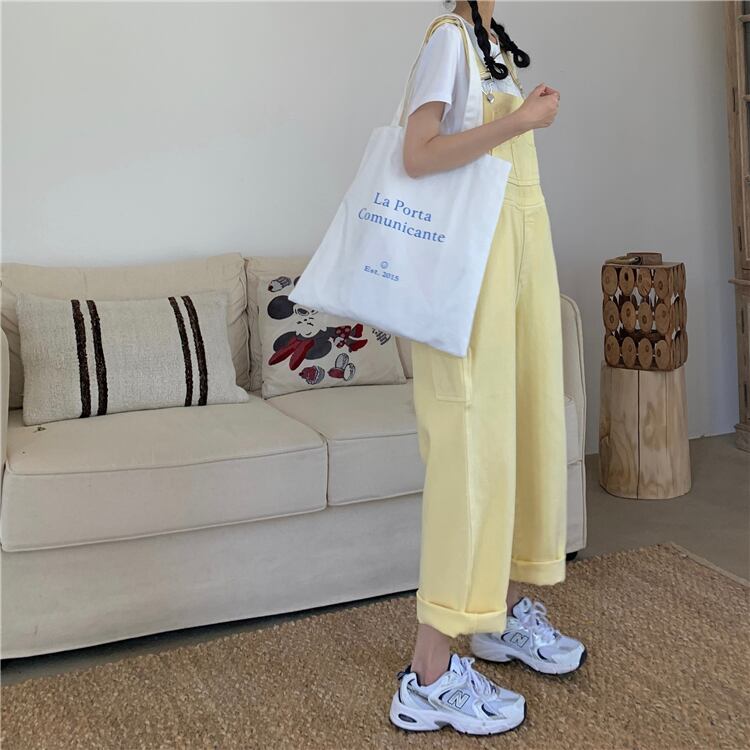 オーバーオール レディース ワイドレッグオーバーオール カジュアル ゆったり デニムパンツ つなぎ オーバー デニム 春 夏 秋 ルーズ オールマッチ スリム 10代 20代 ストレート 大人可愛い 可愛い パンツ オールインワン ハイウエスト 体型カバー お出かけ ゆったり 女子会 買い物 デイリー デート ズボン パステルカラー イエロー 黄色