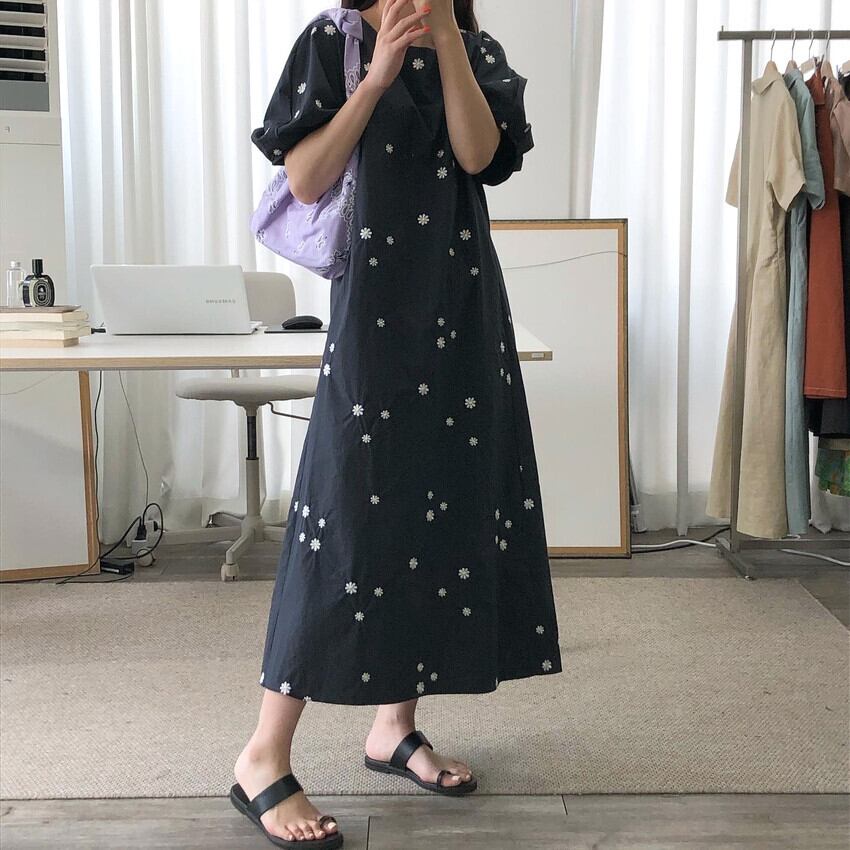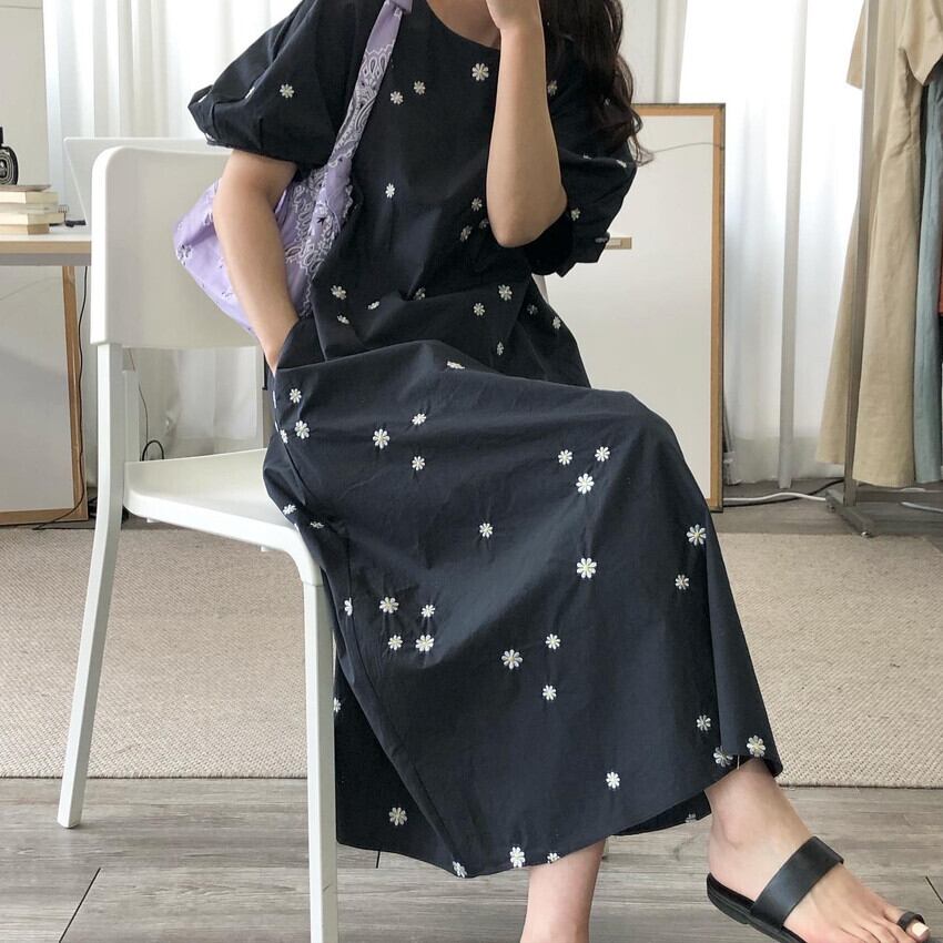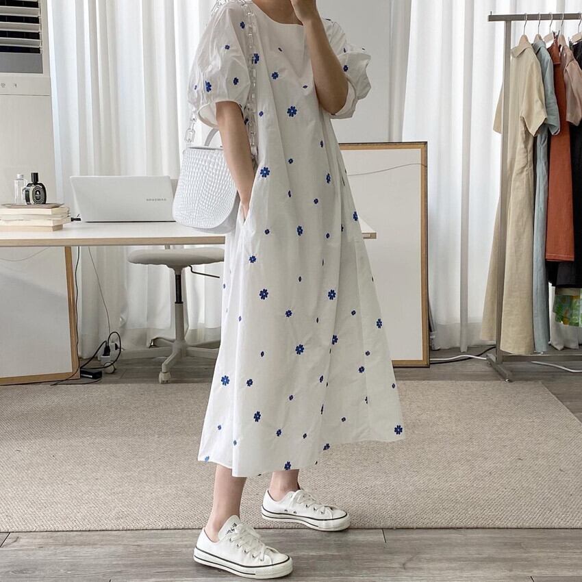 2色 ワンピース 半袖 春夏 かわいい ロング aライン パフスリーブ ラウンドネック ホワイト ブラック ワンサイズ 大きめ ゆったり 大人可愛い きれいめ シンプル カジュアル 大人 上品 おしゃれ ナチュラル リラックス 小花柄 スタイル 楽ちん モテ 体型カバー 定番 普段使い ラブリー キュート ガーリー ルーズ エレガント 通勤 通学 ママコーデ デート お出かけ 女子会 お泊まり 休日 イベント リゾート 旅行 ショッピング 参観日 ママ OL 学生 女の子 10代 20代 30代 40代