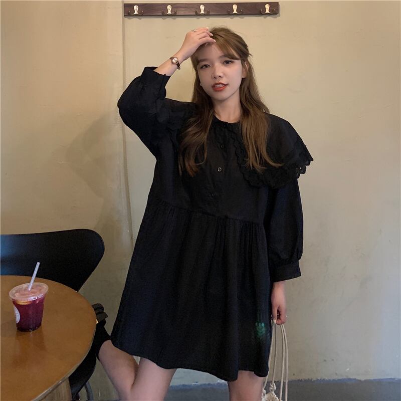 2色 レトロ風 ワンピース 長袖 春 夏 きれいめ カジュアル かわいい aライン Aライン フレア ワンピドレス ショート ショート丈 膝上 ぽわん袖 ボリューム袖 ボリュームスリーブ キャンディスリーブ Uネック ラウンドネック ドールカラー ワイドカラー ビッグカラー フリルカラー セーラーカラー 2重襟 フレア セミフレア フリル ウエストマーク 白 ホワイト 黒 ブラック ワンサイズ かわいい シンプル カジュアル おしゃれ ナチュラル レトロ 無地 韓国系 オルチャン ロリータ ラブリー
