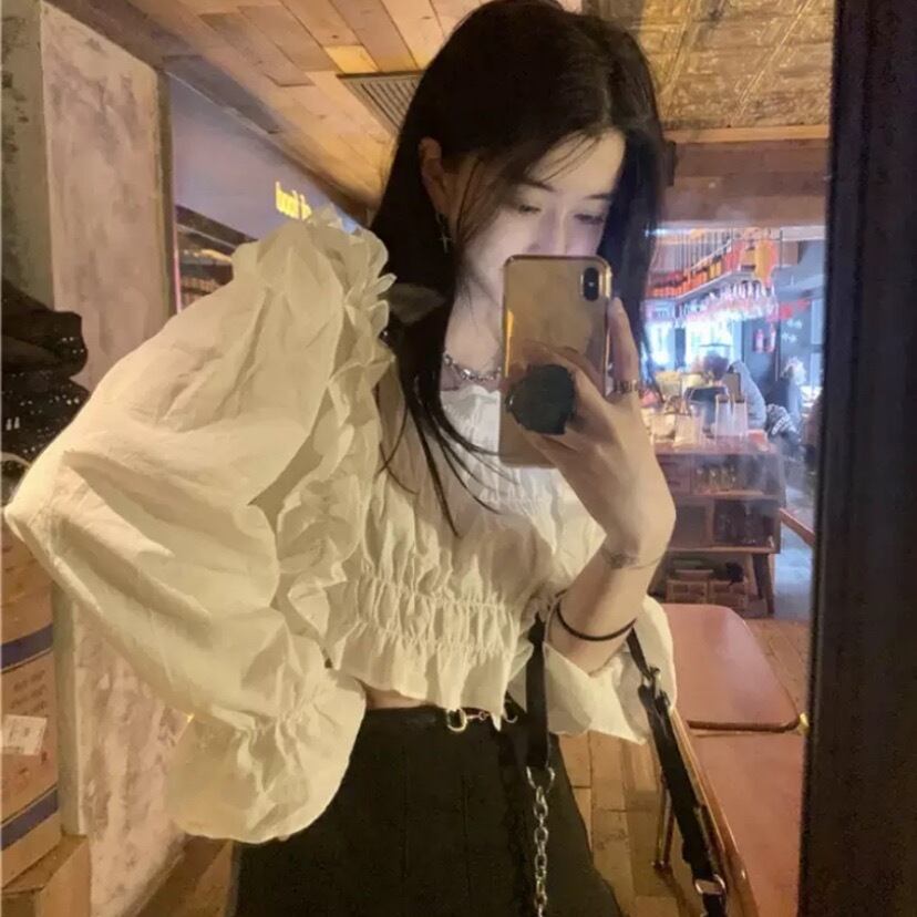 2色 トップス カットソー レディース 春 秋 かわいい ショート丈 長袖 パフスリーブ フリル袖 スクエアネック カシュクール フリル ギャザー ホワイト ブルー S M L XL 大人可愛い きれいめ カジュアル 大人 おしゃれ かっこいい リラックス 無地 コーデ スタイル モテ 普段使い トレンド 10代 20代 こなれ感 キュート ルーズ 個性的 セクシー 主役級 存在感 通勤 通学 デート お出かけ 女子会 お泊まり 休日 パーティー イベント 旅行 ショッピング 同窓会 高校生 OL 学生