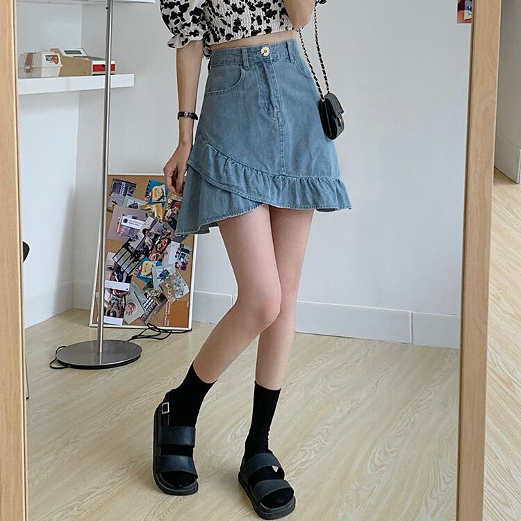 しっかりとしたデニム生地で裾にはかっこ可愛いフリルがついて女の子らしさをたっぷりと演出します!!