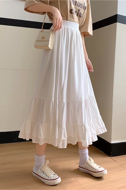 3色 スカート 春夏 秋冬 きれいめ フレアスカート ティアードスカート ロング丈 無地 ウエスト ゴム ふわふわ ホワイト ブラック パープル かわいい 大人可愛い シンプル カジュアル 大人 上品 おしゃれ かっこいい ワンサイズ ラフ キュート ガーリー ルーズ ママ 高校生 OL 学生 10代 20代 30代 40代 トレンド 着回し 普段使い コーデ スタイル 楽ちん モテ 体型カバー オフィス 通勤 通学 デート お出かけ 女子会 お泊まり 休日 イベント リゾート 旅行 ショッピング