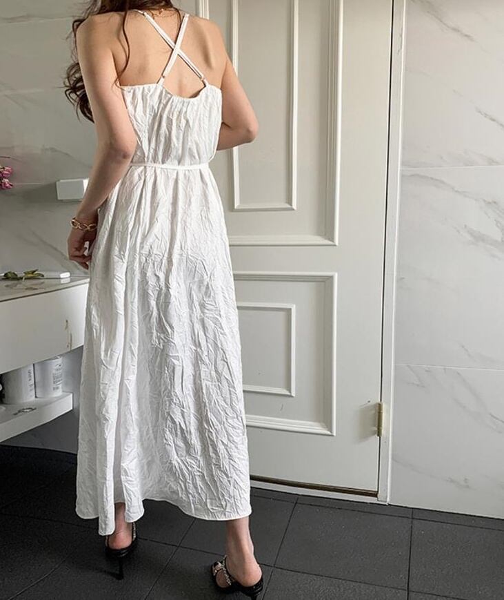 3色 ワンピース ノースリーブ 春 夏 きれいめ カジュアル かわいい フォーマル aライン ルームウェア Aライン フレア ティアード ワンピドレス キャミワンピ ロング ロング丈 9分丈 アンクル丈 Uネック ラウンドネック フレア セミフレア 切り替えデザイン バックシャン バックコンシャス 背中魅せ シフォン リボン ウエストマーク ウエストリボン 白 ホワイト 黒 ブラック 茶色 ブラウン ワンサイズ かわいい 大人可愛い きれいめ シンプル カジュアル 大人 上品 おしゃれ ナチュラル