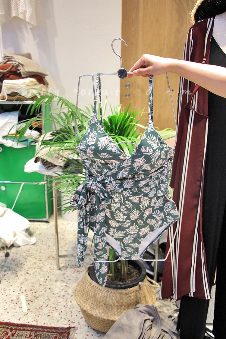 上品で大人可愛いフラワー柄に、華奢な肩紐とワンピース型でセクシーをプラス◎