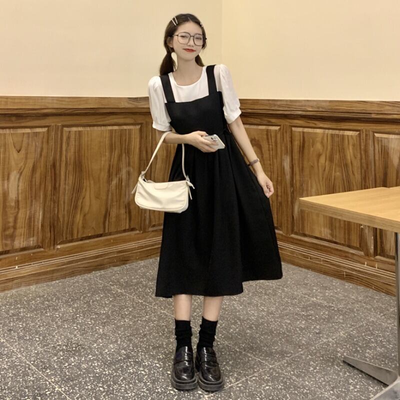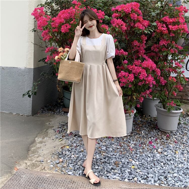 2色 ワンピース 半袖 春夏 きれいめ ロング aライン 2ピース シャツ付き Tシャツワンピ aライン Aライン フレア ロング ロング丈 マキシ マキシ丈 7分丈 ミディアム丈 ミドル丈 ぽわん袖 ボリューム袖 袖コンシャス 襟なし フレア セミフレア Aライン リボン ウエストマーク ウエストリボン 黒 ブラック ベージュ くすみカラー 大人カラー ワンサイズ ゆったり ゆる かわいい 大人可愛い きれいめ シンプル カジュアル 大人 上品 おしゃれ ナチュラル リラックス フェミニン 無地