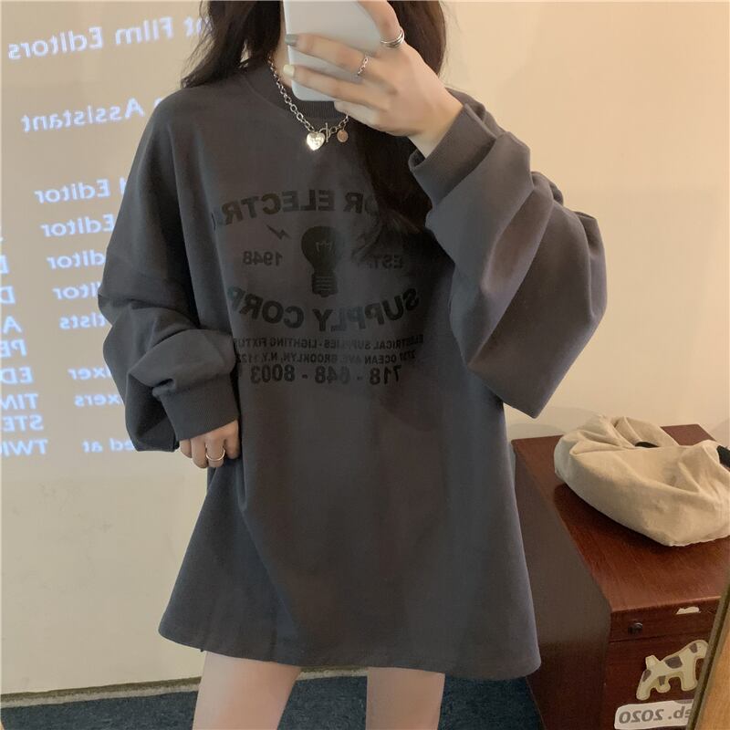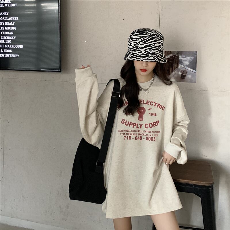 2色 トップス Tシャツ プルオーバー チュニック 冬 春 秋 かわいい カジュアル オーバーサイズ ゆったり ロング 長袖 ボリューム袖 ドロップショルダー 萌袖 Uネック ラウンドネック クルーネック BIGシルエット 裾ワイド シンプル 白 ホワイト 灰色 グレー M L XL かわいい 大人可愛い きれいめ シンプル カジュアル おしゃれ ナチュラル かっこいい レトロ プリント 英字 韓国 韓国系 オルチャン 韓国ファッション ラフ メンズライク マニッシュ ボーイッシュ スポーティー ルーズ