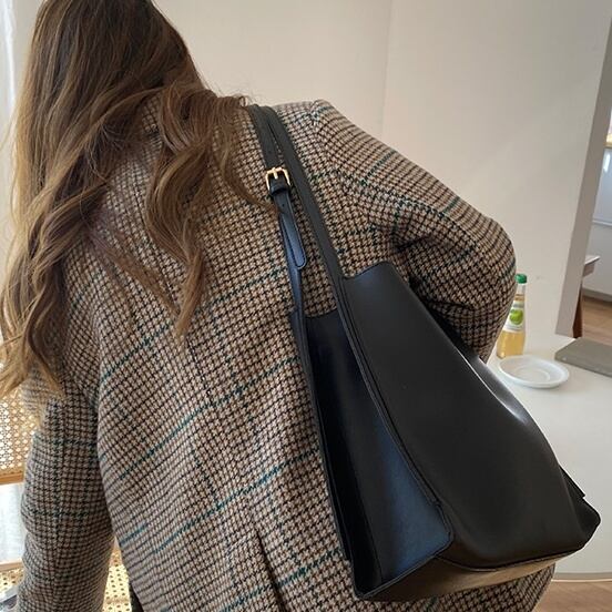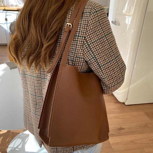 シンプルなデザインで、ショルダーバッグにもできてお洋服に合わせやすい♪