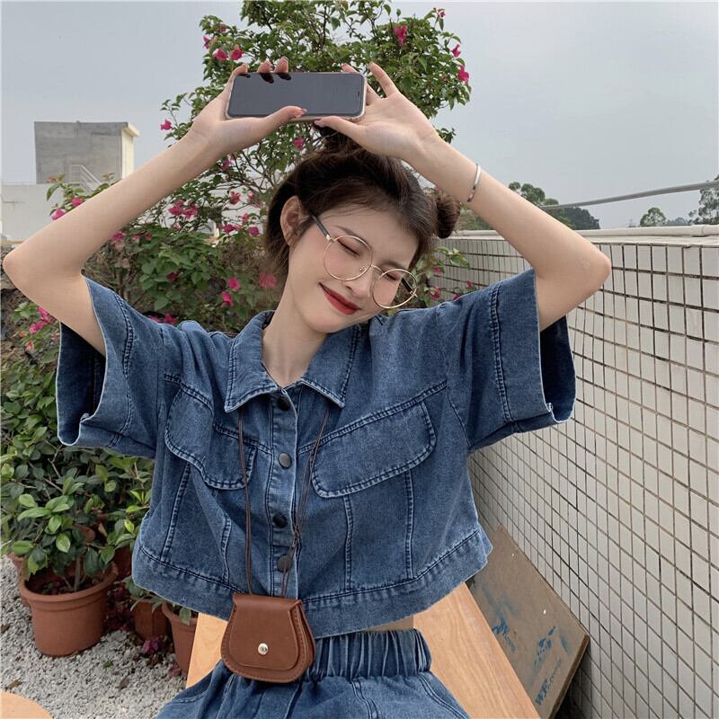セットアップ 半袖 春 夏 きれいめ カジュアル かわいい ショートパンツ デニムパンツ ミニ ミニ丈 ショート ショート丈 五分袖 レギュラーカラー スリム タイト 細身 ストレート ポケット 前開き 青 ブルー ワンサイズ かわいい 大人可愛い きれいめ シンプル カジュアル 大人 上品 おしゃれ ナチュラル かっこいい レトロ 無地 韓国 韓国系 オルチャン 韓国ファッション 体型カバー 美脚 脚長 定番 普段使い インスタ映え こなれ感 ラフ メンズライク マニッシュ ボーイッシュ ガーリー