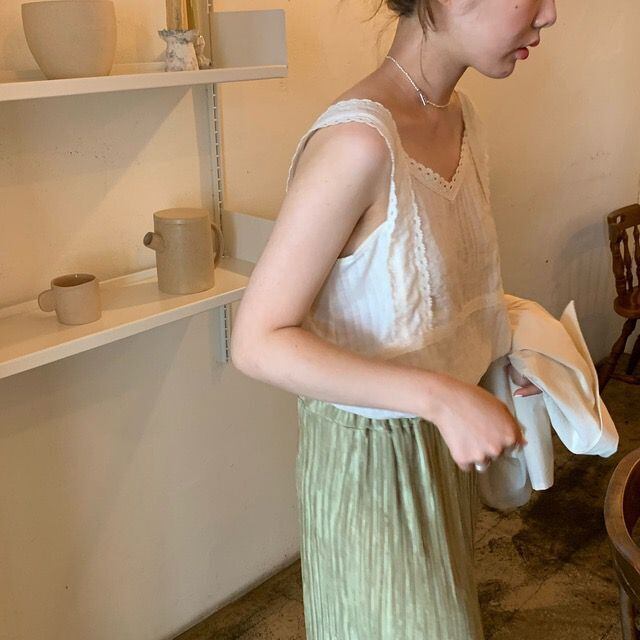 可憐な表情を漂わせるレースが目を惹くノースリーブ。