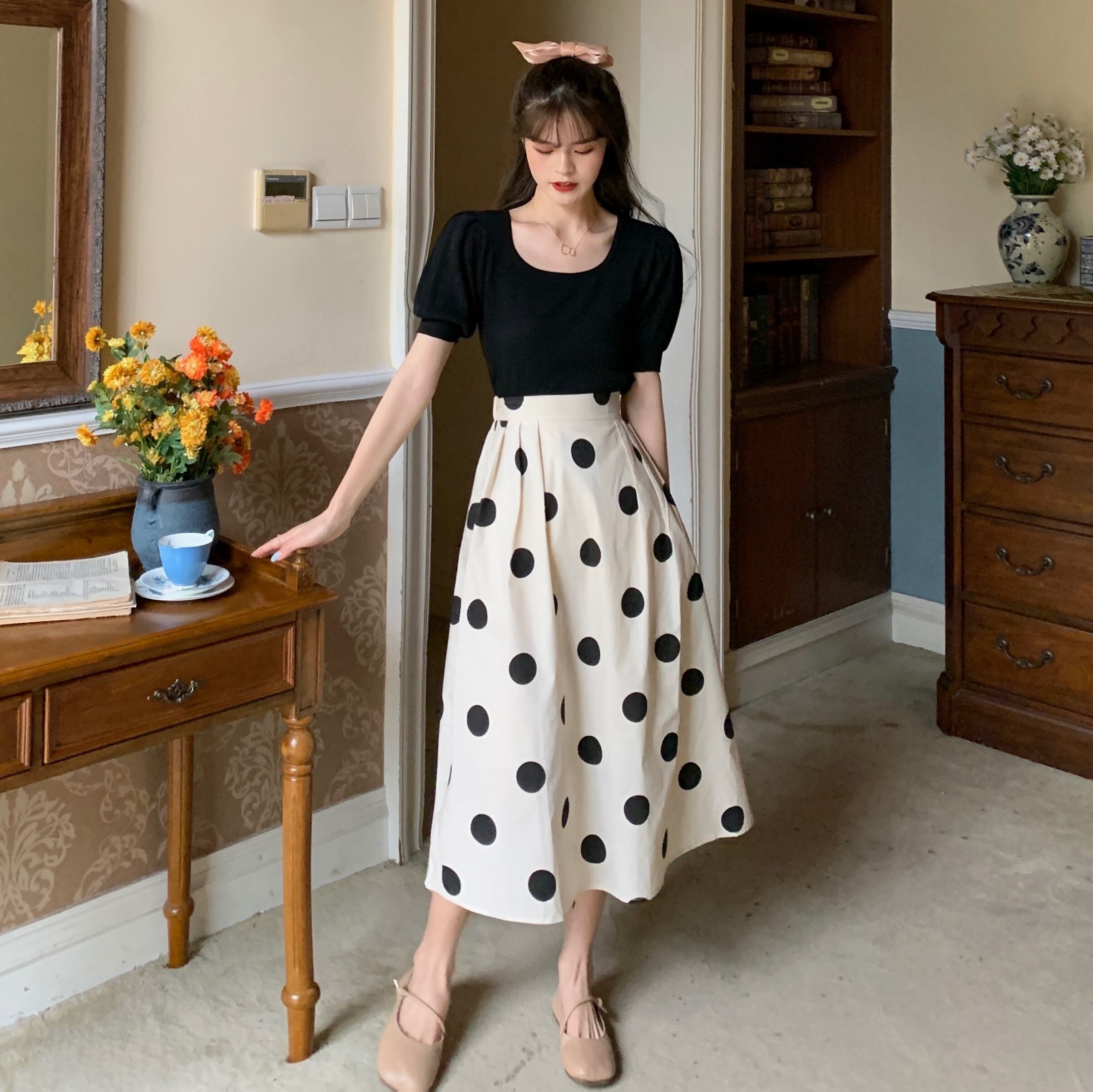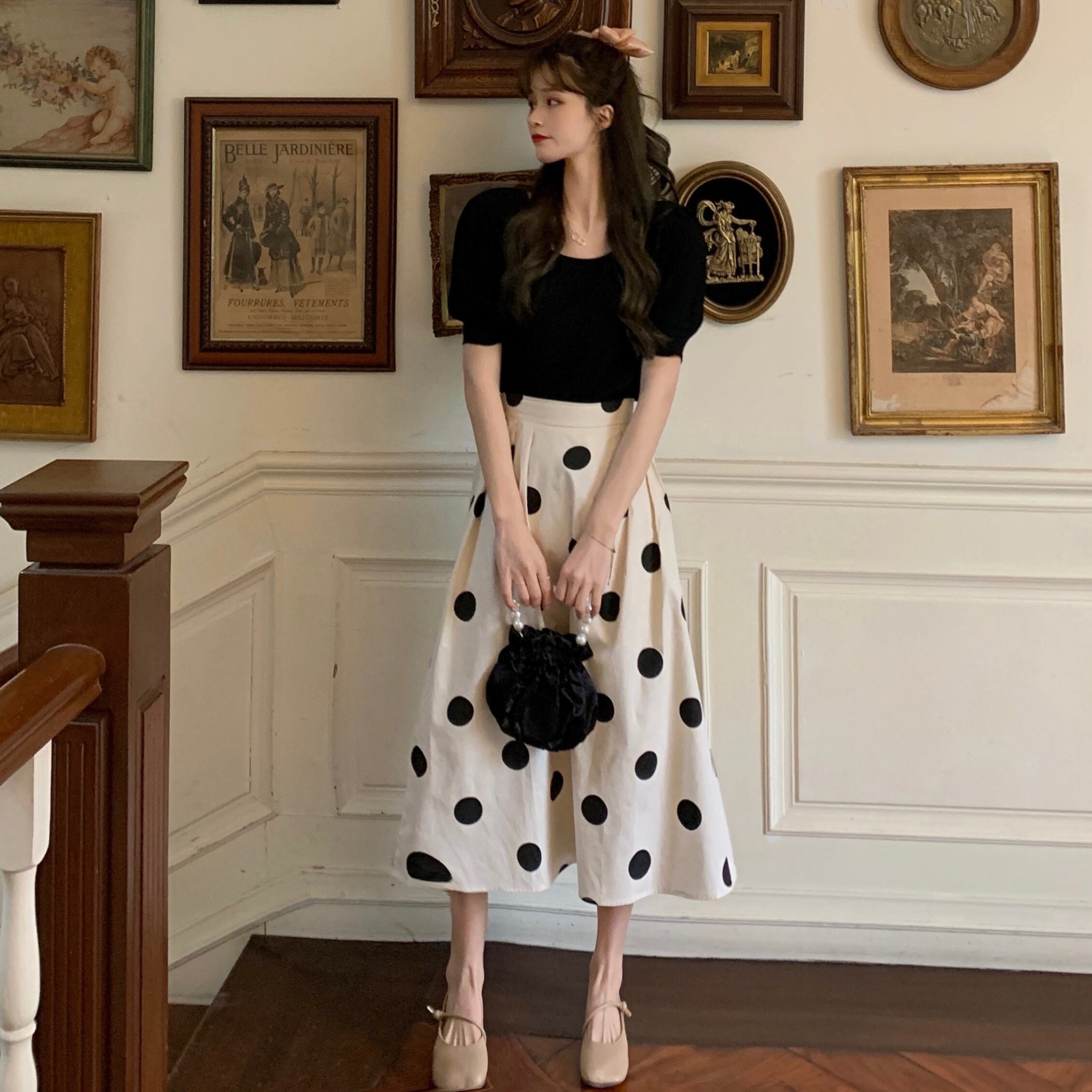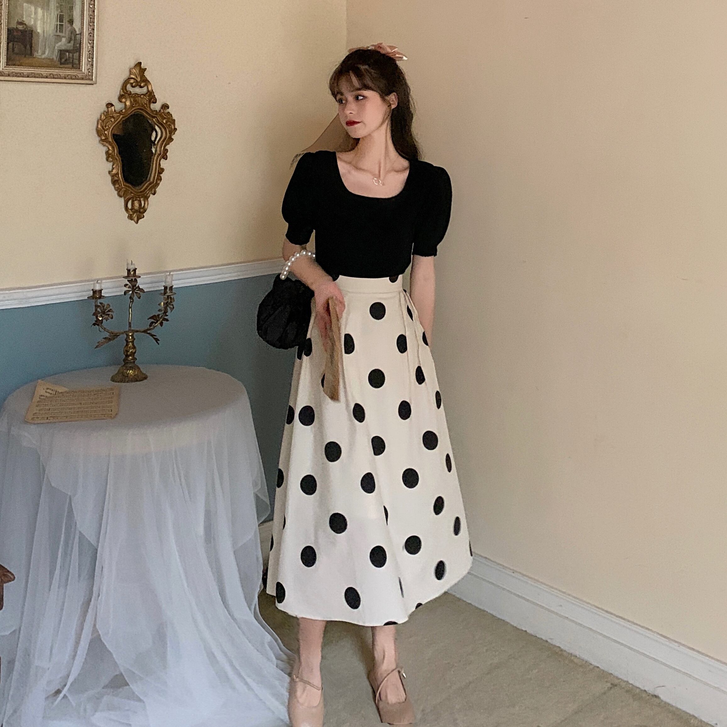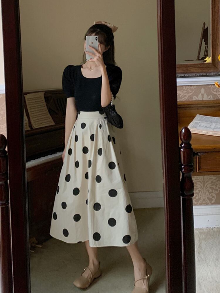 春夏らしい爽やかな水玉ロングスカート