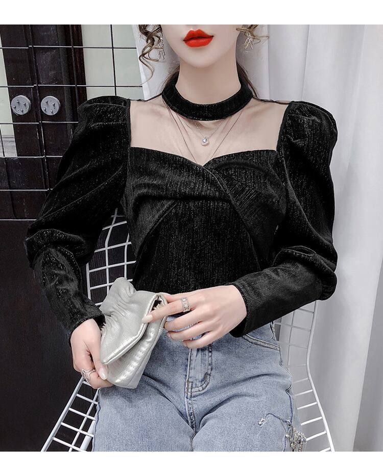 3色 トップス シャツ ブラウス チュニック 夏 春 秋 かわいい きれいめ カジュアル ショート ショート丈 長袖 ボリューム袖 パフスリーブ キャンディスリーブ ぽわん袖 タートルネック スタンドカラー ボトルネック スリム タイト 細身 ストレート 裾イン リボン 透け感 シースルー 白 ホワイト 黒 ブラック 茶色 ブラウン S M L XL かわいい 大人可愛い きれいめ シンプル カジュアル 大人 上品 おしゃれ ナチュラル かっこいい レトロ リラックス 無地 韓国 韓国系 オルチャン