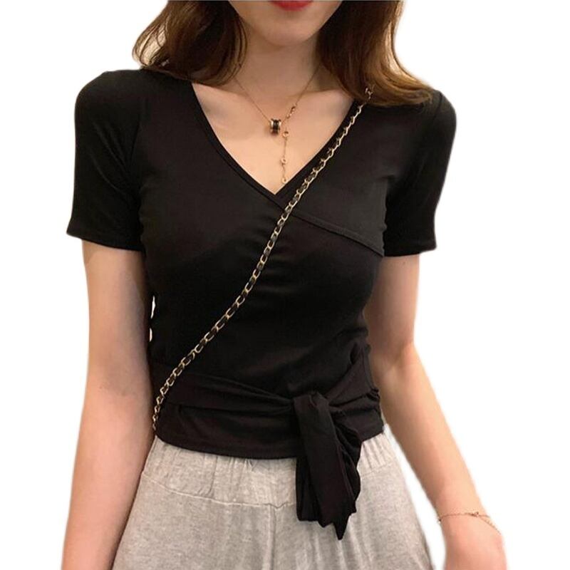 Vネック開きが首を長く小顔に見せてくれます!!タイトなシルエットで体に程よくフィットして、蒸れないさらっとする快適な着心地です!!シンプルなデザインなので、どんなボトムにも合わせやすいアイテムです!!