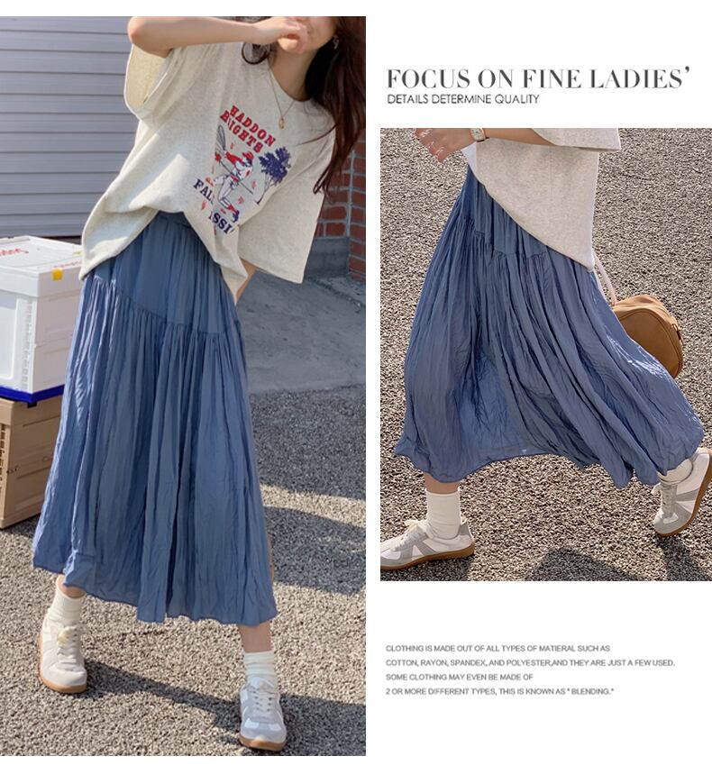 2色 スカート ボトムス 春 夏 きれいめ カジュアル かわいい レディース プリーツスカート フレアスカート トラペーズスカート ミモレ丈 ロング丈 7分丈 無地 ウエスト ゴム シースルー 透け感 白 ホワイト 青 ブルー かわいい 大人可愛い きれいめ シンプル カジュアル 大人 上品 おしゃれ お洒落 レトロ クラシカル エレガント ワンサイズ こなれ感 ラフ ラブリー キュート ガーリー ルーズ 抜け感 レディース オールシーズン シーズンレス 着回し 普段使い 韓国 韓国系 オルチャン