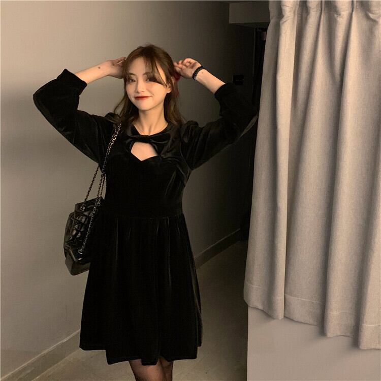 ワンピース 長袖 秋 冬 きれいめ カジュアル かわいい aライン Aライン ワンピドレス ミニ ミニ丈 ショート ショート丈 パフスリーブ 萌袖 Uネック ラウンドネック スリム タイト 細身 ストレート リボン 黒 ブラック M L XL かわいい 大人可愛い きれいめ シンプル カジュアル 大人 上品 おしゃれ ナチュラル かっこいい レトロ 無地 韓国 韓国系 オルチャン 韓国ファッション 体型カバー 美脚 脚長 定番 普段使い インスタ映え こなれ感 ガーリー 個性的 クール セクシー