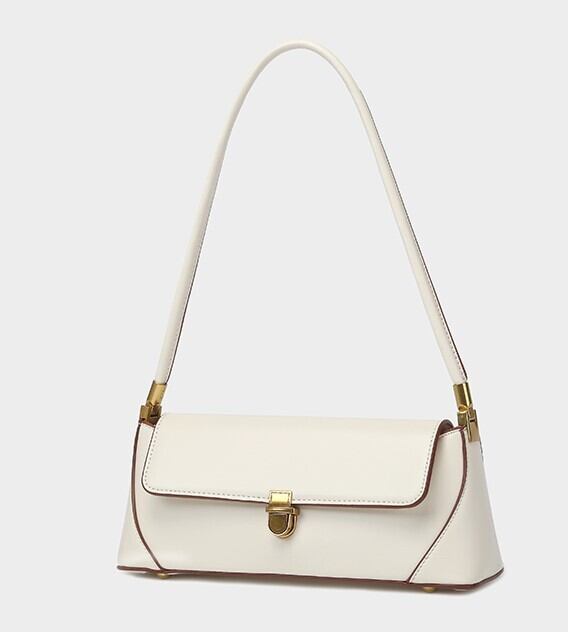 ショルダーバッグ レディース フラップ ワンハンドバッグ 肩かけ 横長 ワイド 無地 ぷっくり レトロ 上品 アンティーク調 ゴールド金具 大人 ハイセンス トレンディ ワンサイズ ブラック ホワイト ブラウ