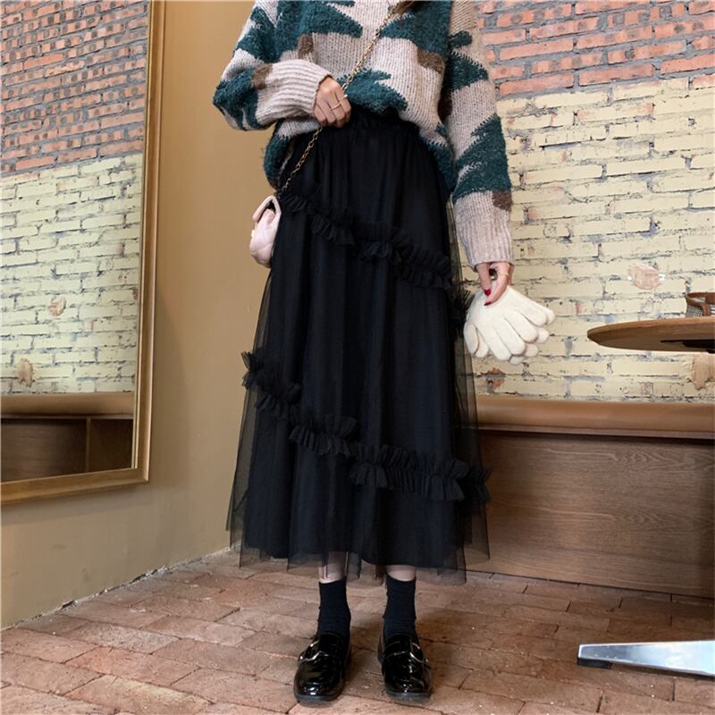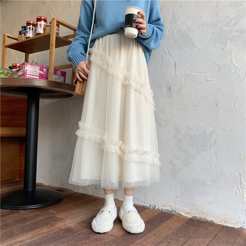 2色 スカート ボトムス 春 夏 きれいめ カジュアル かわいい レディース チュールスカート トラペーズスカート ミモレ丈 ロング丈 7分丈 無地 ウエスト ゴム チュール ハイウエスト ボリューム 透け感 黒 ブラック アプリコット かわいい 大人可愛い きれいめ シンプル カジュアル おしゃれ お洒落 レトロ クラシカル ワンサイズ こなれ感 ラフ ラブリー キュート ガーリー ルーズ 個性的 主役級 存在感 レディース 着回し 普段使い 韓国 韓国系 オルチャン 体型カバー 美脚 脚長 定番