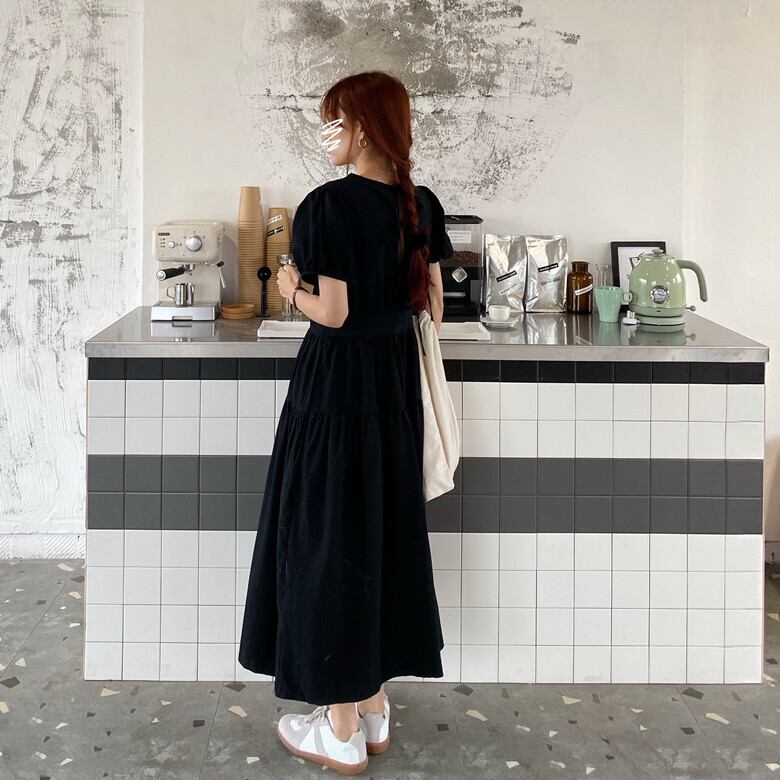 パフスリーブと長めの着丈が絶妙なバランスのワンピースです♪