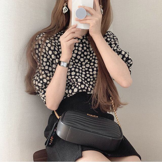 2色 カラバリ カラーバリエーション トップス シャツ カットソー レディース 春 秋 かわいい きれいめ オフィス 半袖 半袖 五分袖 ボリューム袖 パフスリーブ ラウンドネック シフォン シンプル 色展開 ブラック グリーン カラバリ 濃いグリーン ワンサイズ かわいい 大人可愛い きれいめ シンプル 大人 上品 おしゃれ レトロ 柄 花柄 小花柄 フラワー ストライプ コーデ スタイル 楽ちん 着回し モテ 体型カバー 普段使い 10代 20代 30代 こなれ感 ラブリー キュート ガーリー