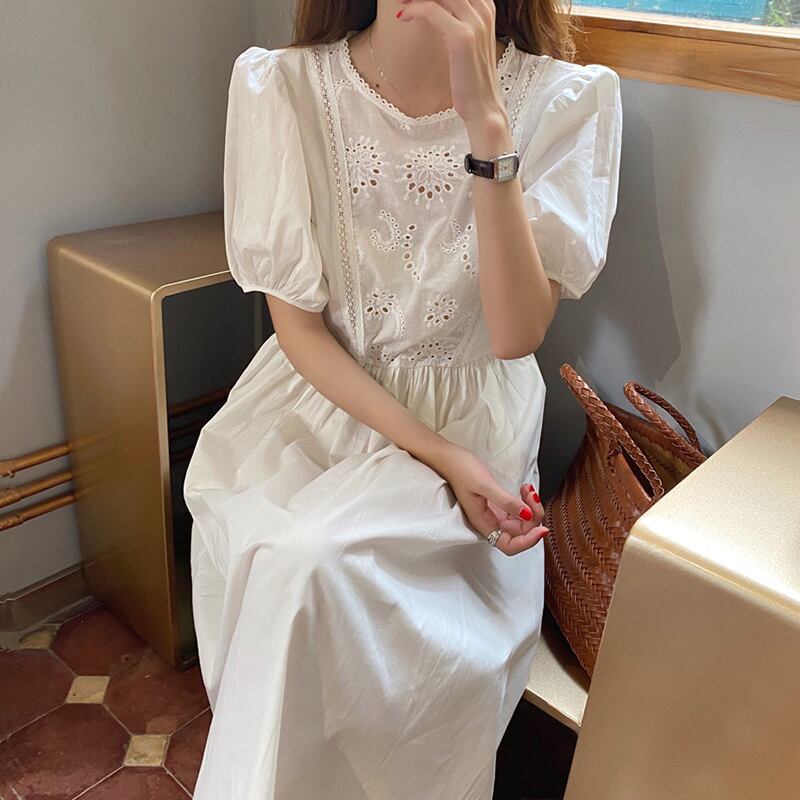 2色 リボン ワンピース 半袖 春夏 きれいめ かわいい aライン Aライン フレア ワンピドレス ミディアム丈 ミドル丈 五分袖 パフスリーブ ラウンドネック 襟なし フレア 切り替えデザイン 背中魅せ 刺繍 リボン ウエストリボン バックリボン 色展開 ホワイト ブラック カラバリ ワンサイズ ゆったり ゆる かわいい 大人可愛い きれいめ シンプル 大人 上品 おしゃれ ナチュラル 無地 スタイル 楽ちん モテ 体型カバー 普段使い ラブリー キュート ガーリー 個性的 セクシー 存在感 デート
