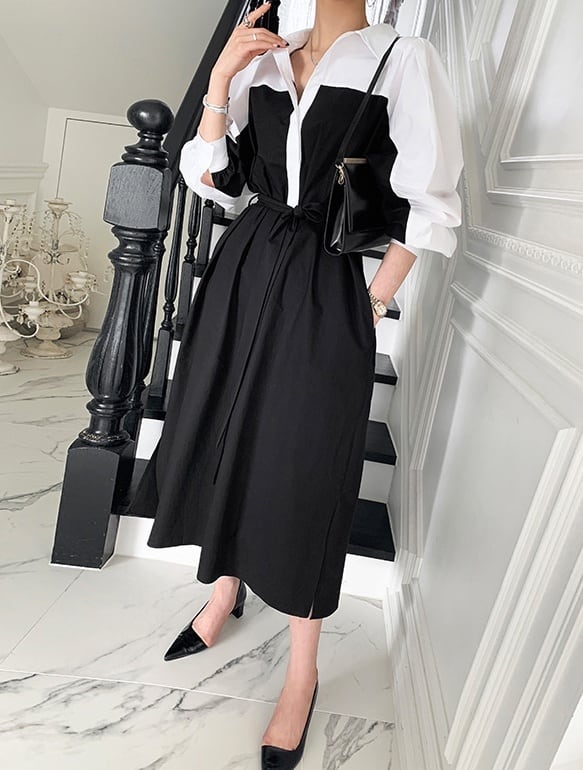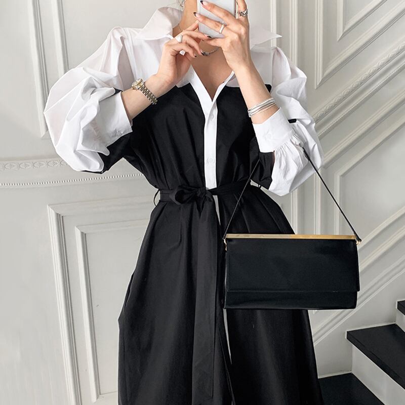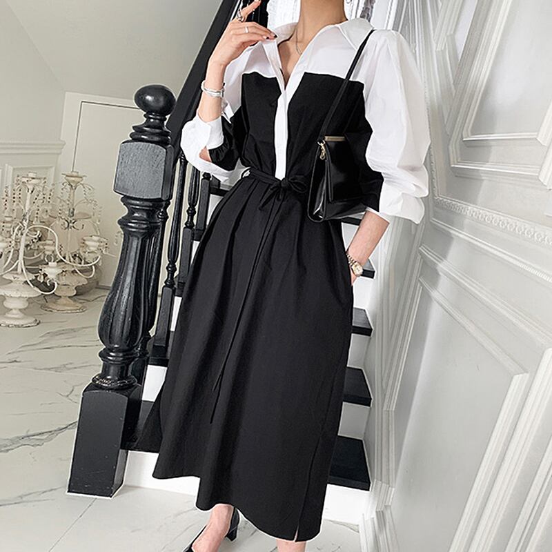 ワンピース 長袖 春 夏 秋 きれいめ カジュアル かわいい ロング フォーマル aライン シャツワンピース Aライン フレア プリーツスカート ロング ロング丈 マキシ マキシ丈 9分丈 アンクル丈 7分丈 ミディアム丈 ミドル丈 レギュラー丈 七分袖 ぽわん袖 ボリューム袖 ボリュームスリーブ キャンディスリーブ パフスリーブ Vネック 深 Vネック 襟付き レギュラーカラー フレア セミフレア リボン ベルト ウエストマーク ウエストリボン 黒 ブラック ワンサイズ かわいい 大人可愛い きれいめ
