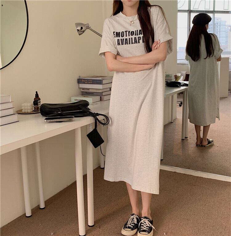 3色 ワンピース 半袖 春 夏 きれいめ カジュアル かわいい ロング ルームウェア Tシャツワンピ シャツワンピース ロング ロング丈 マキシ マキシ丈 9分丈 アンクル丈 7分丈 ミディアム丈 ミドル丈 レギュラー丈 五分袖 ラグラン Uネック クルーネック BIGシルエット ストレート 黒 ブラック 緑 グリーン 灰色 グレー ワンサイズ かわいい 大人可愛い きれいめ シンプル カジュアル 大人 おしゃれ ナチュラル かっこいい レトロ 無地 英字 韓国 韓国系 オルチャン 韓国ファッション