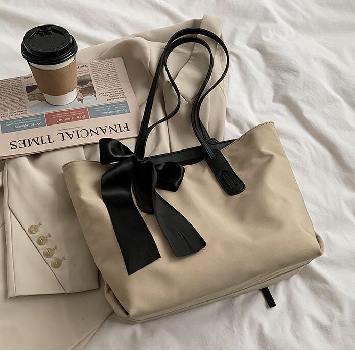 トートバッグ レディース ハイエンド 大容量 バッグ 肩掛けバッグ 肩掛け ハンドバッグ ポータブル かわいい レジャー ソフト カバン オシャレ プレーン お出かけ デイリー シンプル 旅行 買い物 ショッピング カジュアル 大人カジュアル 個性 通勤 通学 大きいサイズ 学生 ミディアム リボン ブラック 黒 ベージュ