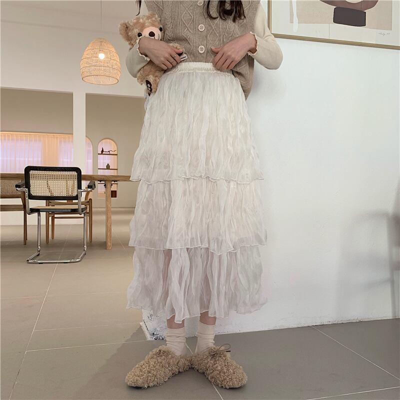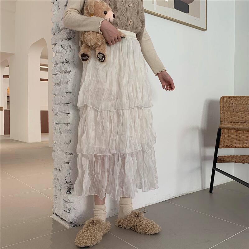 2色 スカート 春 秋 きれいめ カジュアル かわいい プリーツスカート 膝下 ミディアム丈 ミドル丈 無地 シフォン フリル ふわふわ 透け感 白 ホワイト 黒 ブラック モノトーン かわいい 大人可愛い きれいめ シンプル カジュアル 大人 上品 おしゃれ お洒落 ワンサイズ こなれ感 ラブリー キュート ガーリー 個性的 存在感 とろみ感 レディース 女性用 高校生 OL 学生 10代 20代 普段使い ファッション コーデ スタイル 楽ちん モテ 体型カバー 通学 デート お出かけ 女子会 旅行