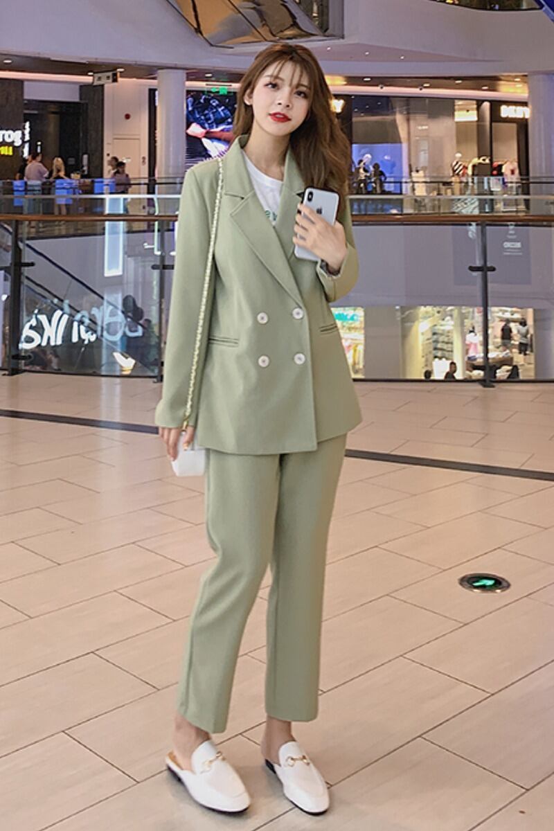 スーツジャケット&ロングパンツ 2色 セットアップ 長袖 春 夏 秋 きれいめ カジュアル かわいい フォーマル ジャケット ストレートパンツ ロング ロング丈 9分丈 アンクル丈 7分丈 ミディアム丈 ミドル丈 レギュラー丈 Vネック 深 Vネック 襟付き レギュラーカラー スリム タイト 細身 ストレート スマート ポケット 前開き ボタン 黒 ブラック 緑 グリーン くすみカラー S M L XL かわいい 大人可愛い きれいめ シンプル カジュアル 大人 上品 おしゃれ ナチュラル かっこいい