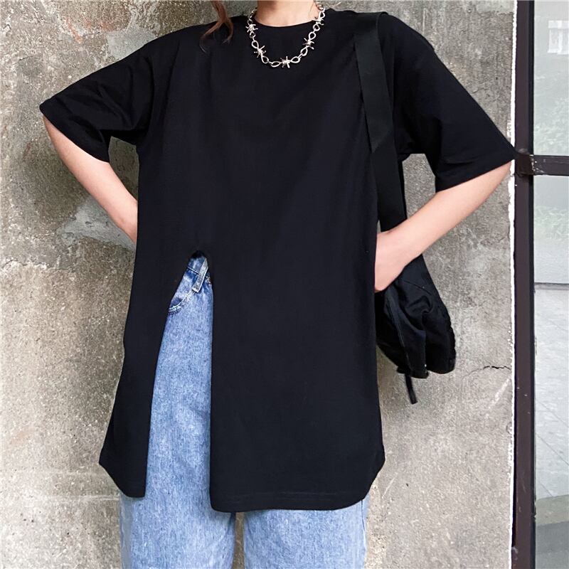 2色 Tシャツ プルオーバー チュニック 春夏 かわいい きれいめ カジュアル オーバーサイズ ゆったり 半袖 五分袖 Uネック ラウンドネック クルーネック BIGシルエット 裾ワイド スリット サイドスリット 白 ホワイト 黒 ブラック M L XL 2XL かわいい 大人可愛い きれいめ シンプル カジュアル 大人 上品 おしゃれ ナチュラル かっこいい レトロ リラックス 無地 韓国 韓国系 オルチャン 韓国ファッション 体型カバー 定番 普段使い インスタ映え こなれ感 ラフ メンズライク