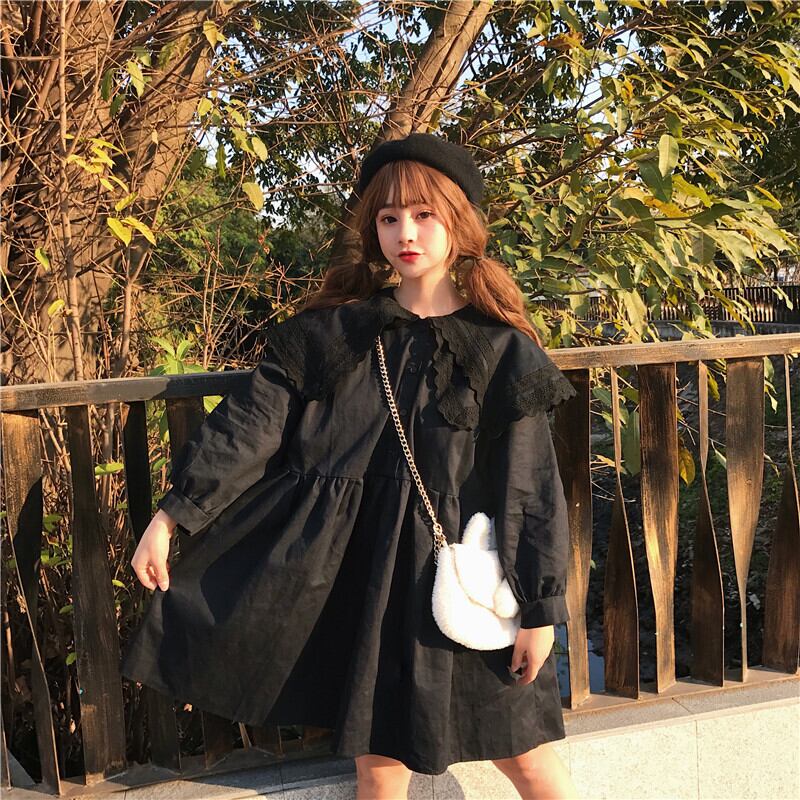 ワンピース レディース ハイウエスト レース ロリータ 原宿 ドール 女子会 お出かけ デート 食事会 プレーン 無地 ドレス 可愛い Aラインスカート スカート きれいめ ショートスカート ルーズ 長袖 大人カジュアル カジュアル シングルブレスト 個性 上品 ショート丈 春 秋 10代 20代 ダブルカラー スタイルアップ ショート丈スカート シンプル 無地 フリル ミッドスカート ホワイト 白 ブラック 黒 モノトーン