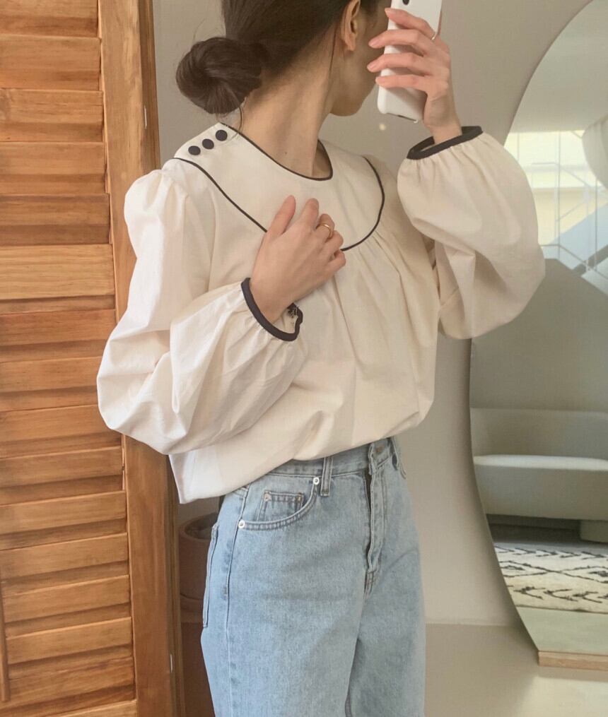 レトロ風 トップス ブラウス レディース 春 きれいめ オフィス 白シャツ 長袖 ゆったり 長袖 ボリューム袖 Uネック ホワイト ネイビー ワンサイズ ゆったり 大人可愛い きれいめ シンプル カジュアル 上品 無地 楽ちん 着回し 体型カバー 定番 プチプラ 安い 普段使い 流行 10代 20代 30代 40代 ラフ キュート フォーマル カジュアル ビジネス OL 通勤 学生 通学 お出かけ 女子会 お泊まり イベント ホテル レストラン 誕生日 バレンタイン 同窓会 高校生 中学生 学生
