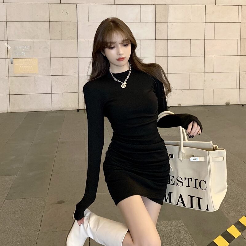 2色 ワンピース 長袖 秋冬 きれいめ ニット ワンピ ミニ丈 萌袖 ラウンドネック スリム タイト 細身 伸縮性 ブラック グレー ワンサイズ ジャスト 大人可愛い きれいめ シンプル 大人 上品 おしゃれ かっこいい 無地 韓国 韓国系 オルチャン 韓国ファッション コーデ スタイル モテ 美脚 脚長 プチプラ 安い インスタ映え こなれ感 個性的 セクシー エレガント 主役級 存在感 抜け感 オフィス OL 通勤 学生 通学 デート お出かけ 女子会 パーティー ショッピング 学生 10代 20代