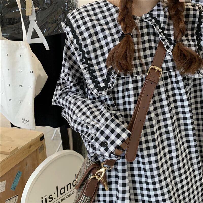 トップス シャツ レディース 春夏 かわいい 長袖 オーバーサイズ ゆったり 長袖 ボリューム袖 萌袖 ラウンドネック 大きな襟 ドールカラー 切り替えデザイン 白 黒 ワンサイズ ゆったり かわいい 大人可愛い おしゃれ 格子柄 韓国系 オルチャン コーデ スタイル 楽ちん 着回し モテ 体型カバー プチプラ 安い 流行 インスタ映え 10代 20代 30代 キュート ガーリー 個性的 存在感 学生 通学 デート お出かけ 女子会 お泊まり 休日 旅行 ショッピング レディース 高校生 中学生 学生
