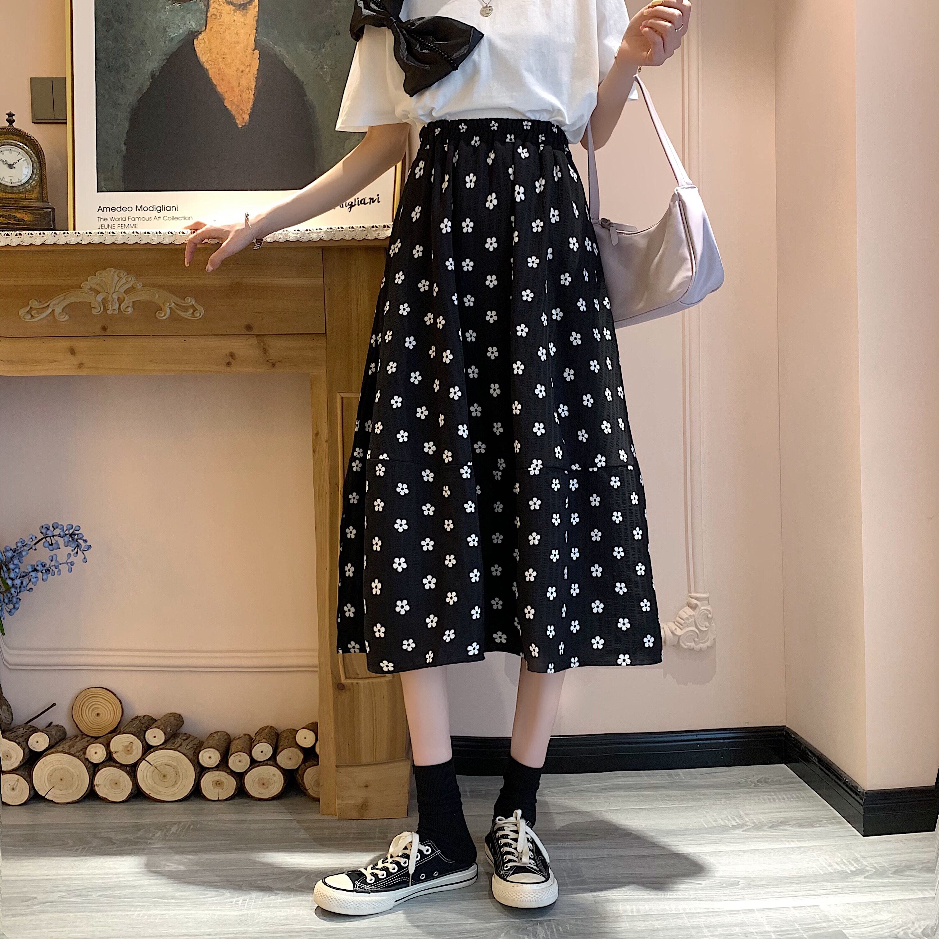 2色 スカート 春夏 かわいい フレアスカート ミドル丈 柄 花柄 小花柄 ウエスト ゴム 切り替えデザイン ホワイト ブラック かわいい 大人可愛い きれいめ 上品 クラシカル S M L XL ゆったり こなれ感 キュート ガーリー 存在感 レディース 高校生 OL 学生 10代 20代 30代 インスタ映え 誕生日 韓国 韓国系 ファッション コーデ 楽ちん モテ 体型カバー プチプラ 安い 流行 オフィス 通勤 通学 デート お出かけ 女子会 お泊まり リゾート 旅行 ホテル ショッピング