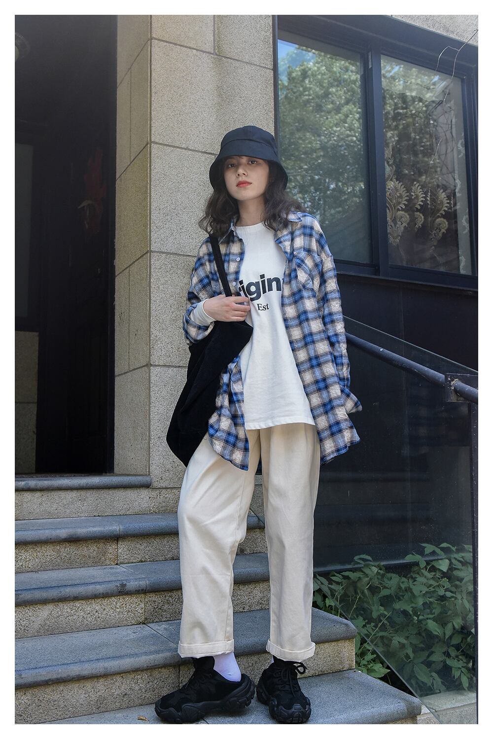 トップスにブラウスやシャツ、ニットを合わせれば、余裕のあるオフィスカジュアルが完成。