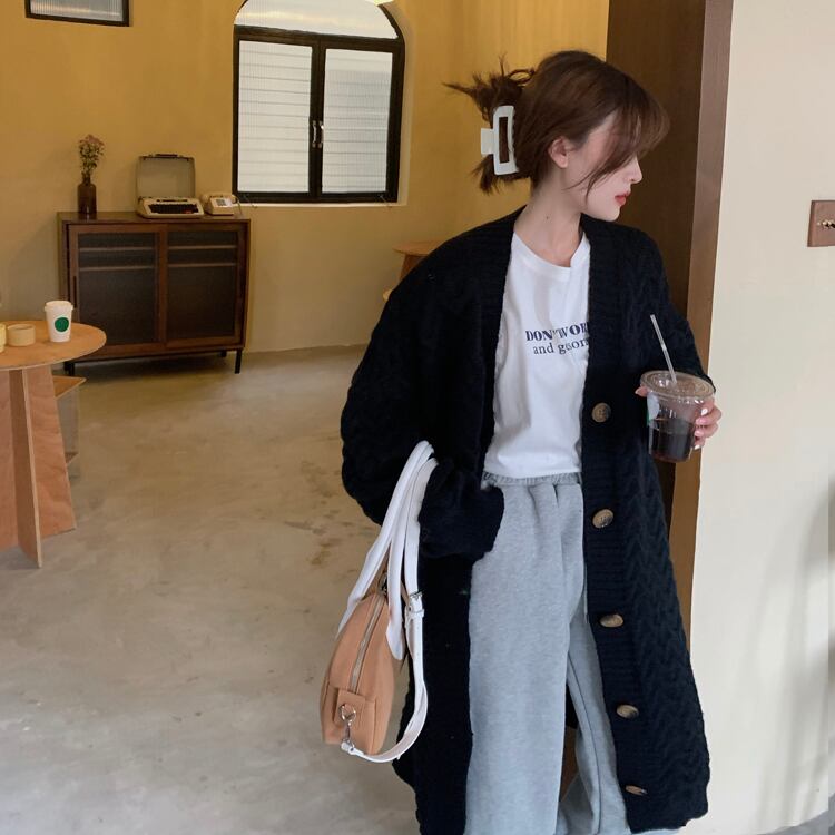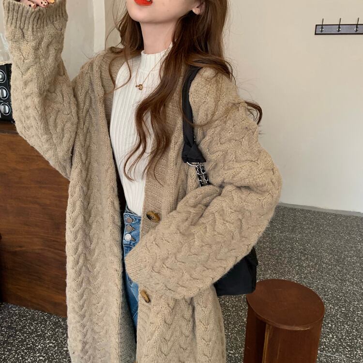 ゆるっと羽織れるざっくり編みのニットカーディガン。