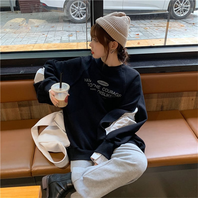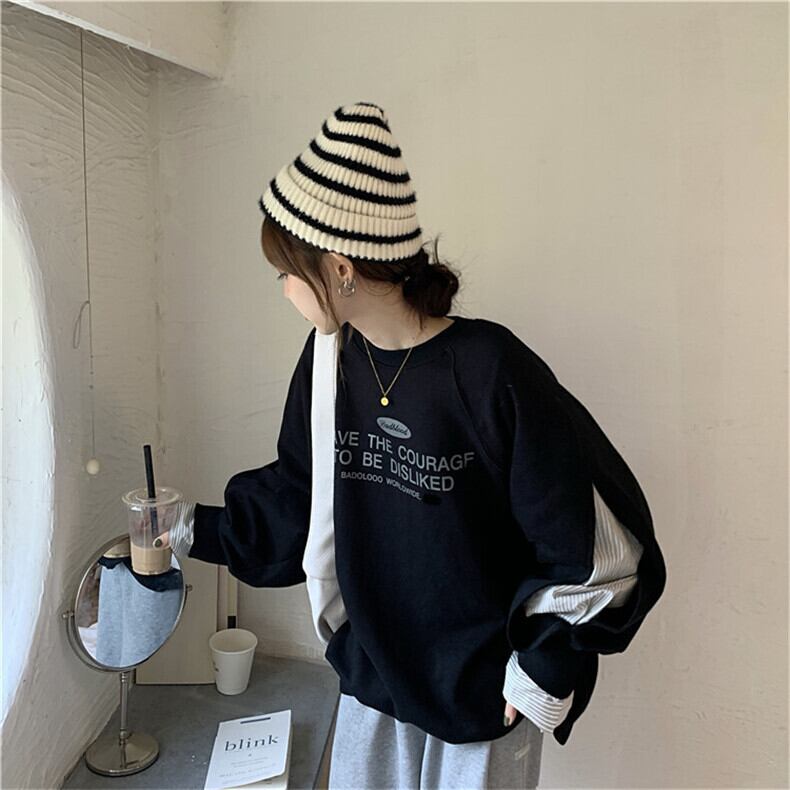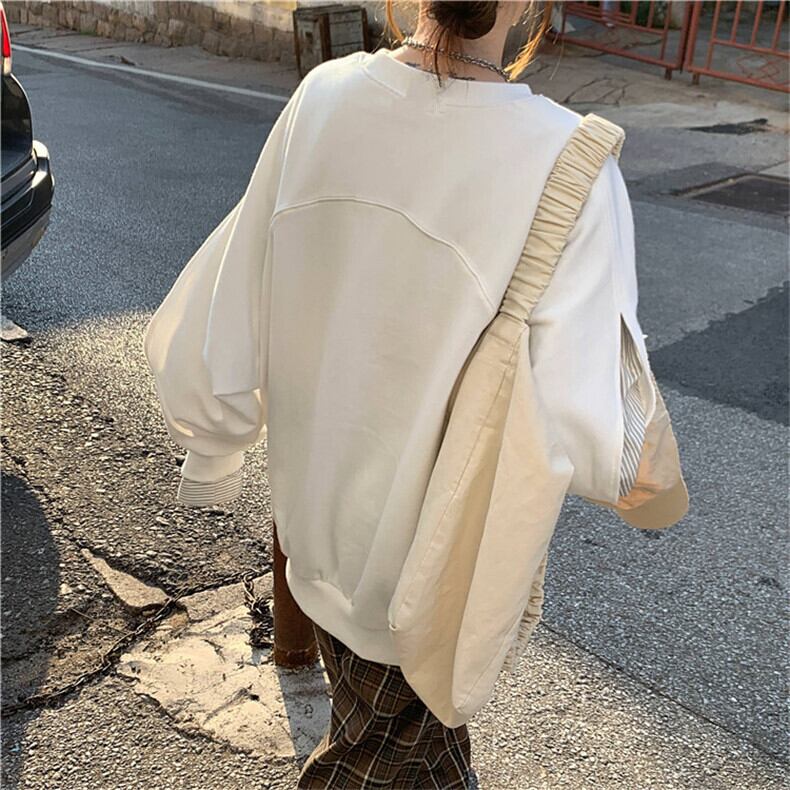 2色 トップス トレーナー レディース 春 秋 カジュアル ゆったり 長袖 オーバーサイズ 大きめ 長袖 ボリューム袖 ラウンドネック 襟なし ワイド ホワイト ブラック S M L XL 2XL 大きいサイズ 大きい 大きめ ビッグサイズ ゆったり 大人可愛い シンプル カジュアル 上品 おしゃれ ナチュラル プリント オルチャン スタイル 楽ちん 着回し 体型カバー プチプラ 普段使い お揃い 10代 20代 30代 40代 ラフ マニッシュ ガーリー 存在感 抜け感 学生 通学 お出かけ 女子会