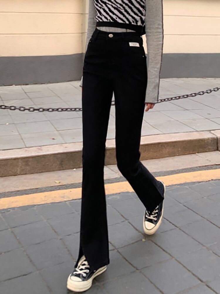 2色 ボトムス パンツ 春 夏 秋 冬 カジュアル かわいい レディース ストレートパンツ スリムパンツ デニムパンツ 無地 フロントスリット ブラック ブルー かわいい 大人可愛い シンプル カジュアル おしゃれ お洒落 かっこいい クラシカル S M L ジャスト こなれ感 ラフ メンズライク マニッシュ ボーイッシュ スポーティー 抜け感 レディース 女性用 ママ 高校生 中学生 OL 学生 10代 20代 30代 40代 50代 トレンド 流行 インスタ映え オールシーズン シーズンレス
