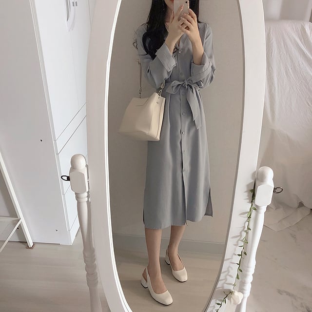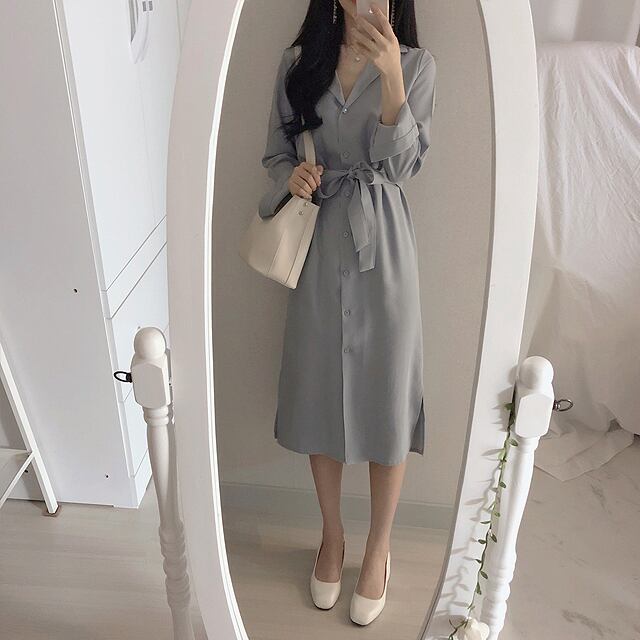 2色 リボン ワンピース 長袖 春 秋 冬 きれいめ フレアスカート 膝下 ミモレ丈 Vネック 襟付き スリム タイト 細身 ストレート スマート リボン サイドスリット 前開き ピンク ライトブルー S M L XL ジャスト かわいい 大人可愛い きれいめ 大人 上品 おしゃれ 無地 コーデ スタイル モテ 美脚 脚長 インスタ映え こなれ感 キュート ガーリー 個性的 クール モード系 セクシー エレガント 主役級 存在感 抜け感 OL 通勤 学生 ママコーデ デート