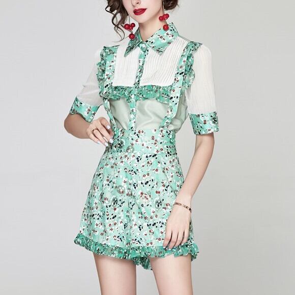 セットアップ 半袖 春 夏 秋 かわいい 低身長 ミニ丈 ショート丈 五分袖 襟付き スリム 細身 Iライン フリル 前開き 白 ホワイト 緑 グリーン 春カラー M L XL かわいい きれいめ カジュアル おしゃれ 花柄 小花柄 フラワー 韓国系 韓国ファッション スタイル モテ 美脚 脚長 インスタ映え こなれ感 ボーイッシュ ラブリー キュート ガーリー 個性的 存在感 学生 デート 女子会 休日 パーティー イベント ショッピング 低身長 レディース 女の子 10代 20代