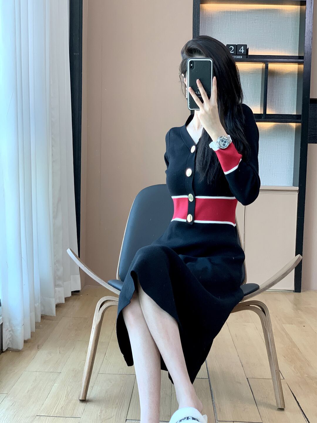 3色 ワンピース 長袖 春 秋 きれいめ ニット ワンピ ニットスカート ミディアム丈 ミドル丈 Vネック 前開き ブラック S M L XL 大人可愛い きれいめ シンプル カジュアル 上品 おしゃれ ナチュラル かっこいい ボーダー コーデ スタイル 楽ちん モテ 美脚 脚長 インスタ映え セクシー エレガント 主役級 抜け感 ビジネス OL デート お出かけ 女子会 イベント ホテル レストラン ショッピング 映画館 シーズンレス レディース ママ 10代 20代 30代 40代 ニット